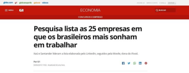 Na 4ª edição da lista LinkedIn Top Companies 2019, o Grupo XP (XP Inc.) entrou pela primeira vez no ranking e em 4º lugar geral com as 25 empresas onde os brasileiros sonham em trabalhar!